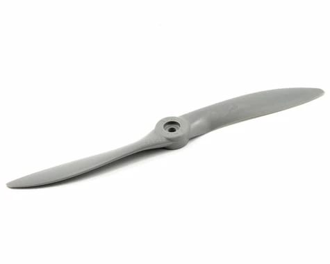 This is the APC 10×4 Sport Propeller. APC propellers are manufactured using a pultrusion process which allows for a higher fiber (60%) to resin (nylon binder) density. This provides substantially higher strength and stiffness than glass-filled nylon. The additional stiffness is beneficial to control vibration resonance response. The higher strength allows the use of thinner cross-sections, beneficial to weight and aerodynamic efficiency.