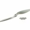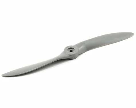 This is the APC 10×5 Sport Propeller. APC propellers are manufactured using a pultrusion process which allows for a higher fiber (60%) to resin (nylon binder) density. This provides substantially higher strength and stiffness than glass-filled nylon. The additional stiffness is beneficial to control vibration resonance response. The higher strength allows the use of thinner cross-sections, beneficial to weight and aerodynamic efficiency.