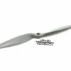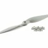 This is the APC 11×8 Sport Propeller. APC propellers are manufactured using a pultrusion process which allows for a higher fiber (60%) to resin (nylon binder) density. This provides substantially higher strength and stiffness than glass-filled nylon. The additional stiffness is beneficial to control vibration resonance response. The higher strength allows the use of thinner cross-sections, beneficial to weight and aerodynamic efficiency.