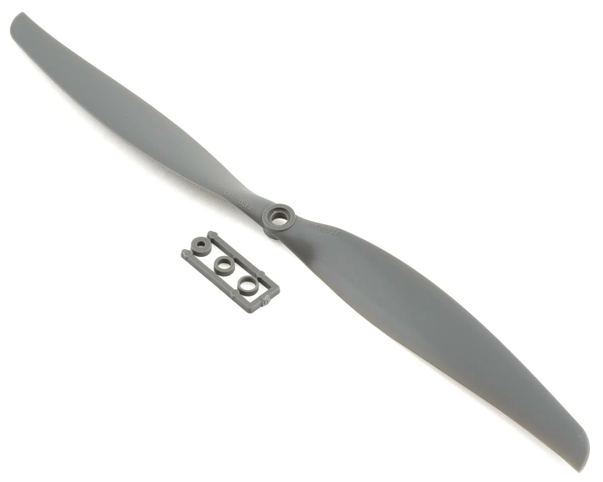 This is the APC 12×5.8SF Slow Flyer “SF3D” Propeller. APC propellers are manufactured using a pultrusion process which allows for a higher fiber (60%) to resin (nylon binder) density. This provides substantially higher strength and stiffness than glass-filled nylon. The additional stiffness is beneficial to control vibration resonance response. The higher strength allows the use of thinner cross-sections, beneficial to weight and aerodynamic efficiency.