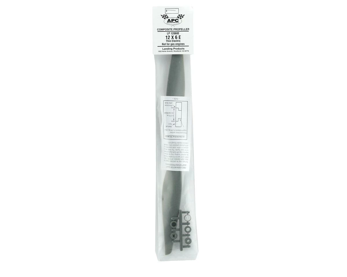 This is the APC 12×6 Thin Electric Propeller. APC propellers are manufactured using a pultrusion process which allows for a higher fiber (60%) to resin (nylon binder) density. This provides substantially higher strength and stiffness than glass-filled nylon. The additional stiffness is beneficial to control vibration resonance response. The higher strength allows the use of thinner cross-sections, beneficial to weight and aerodynamic efficiency.
