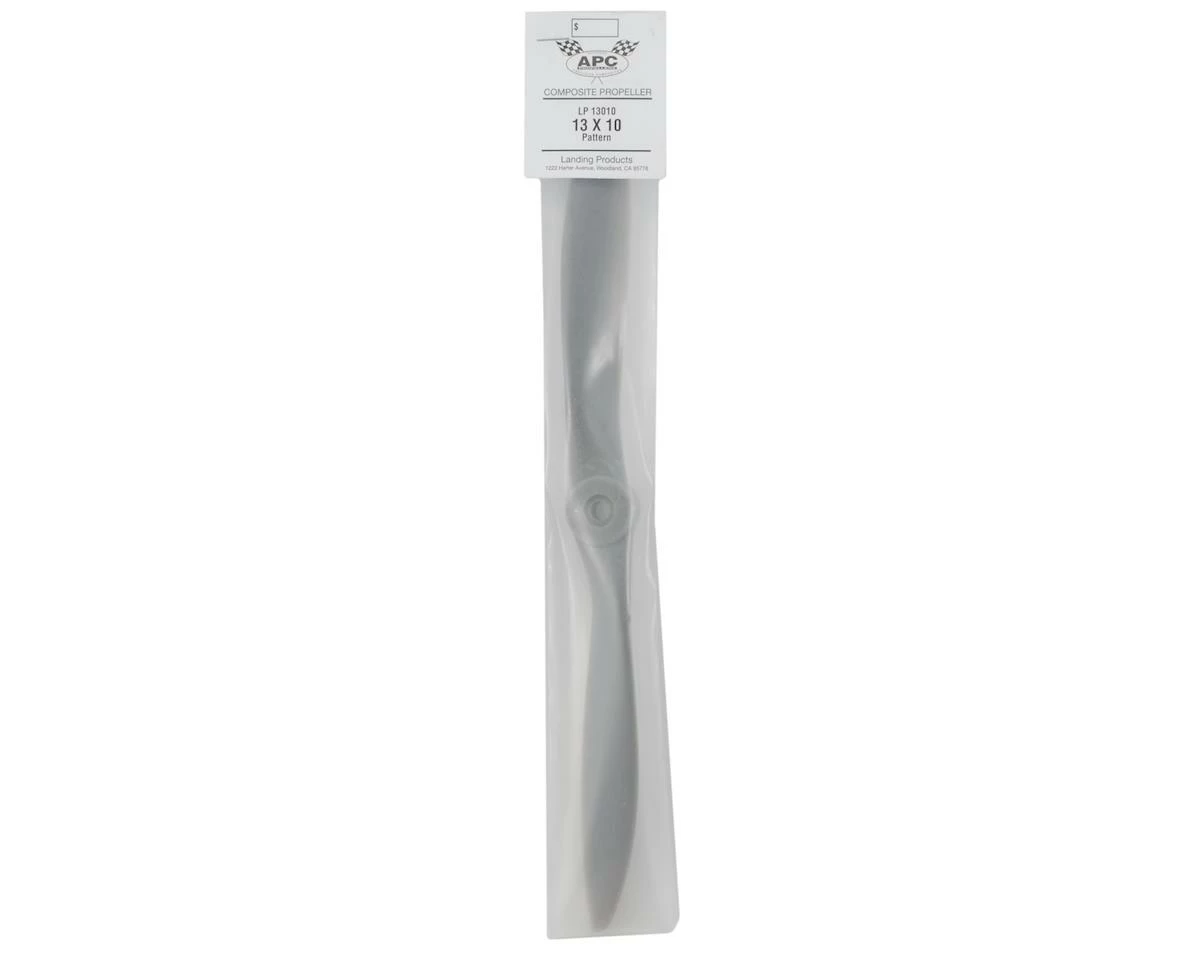 This is the APC 13×10 Pattern Propeller. APC propellers are manufactured using a pultrusion process which allows for a higher fiber (60%) to resin (nylon binder) density. This provides substantially higher strength and stiffness than glass-filled nylon. The additional stiffness is beneficial to control vibration resonance response. The higher strength allows the use of thinner cross-sections, beneficial to weight and aerodynamic efficiency.