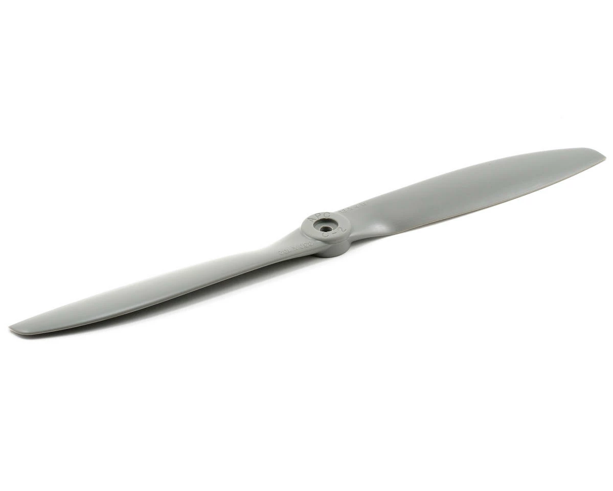 This is the APC 13×4 3D Fun Fly Propeller. APC propellers are manufactured using a pultrusion process which allows for a higher fiber (60%) to resin (nylon binder) density. This provides substantially higher strength and stiffness than glass-filled nylon. The additional stiffness is beneficial to control vibration resonance response. The higher strength allows the use of thinner cross-sections, beneficial to weight and aerodynamic efficiency.