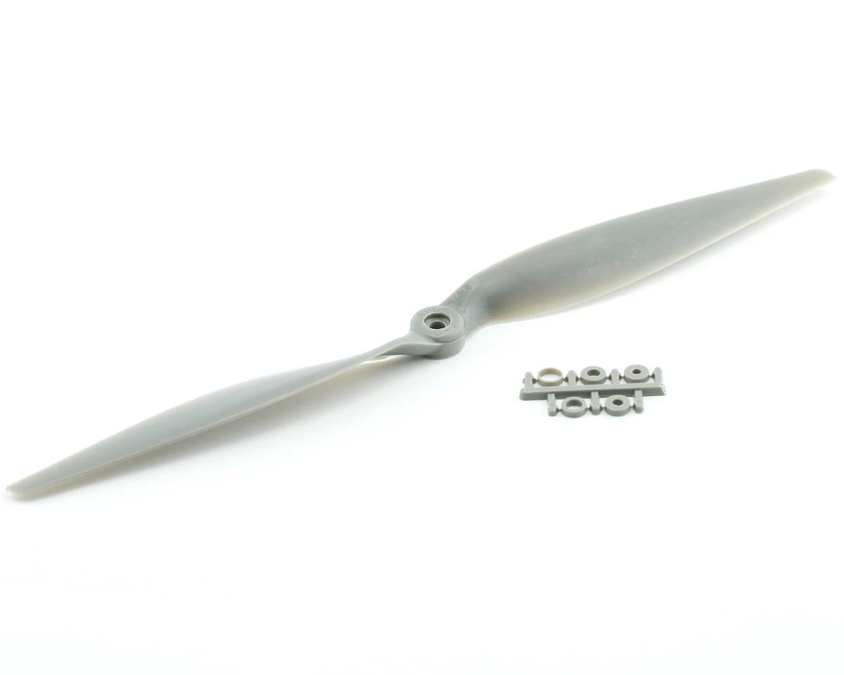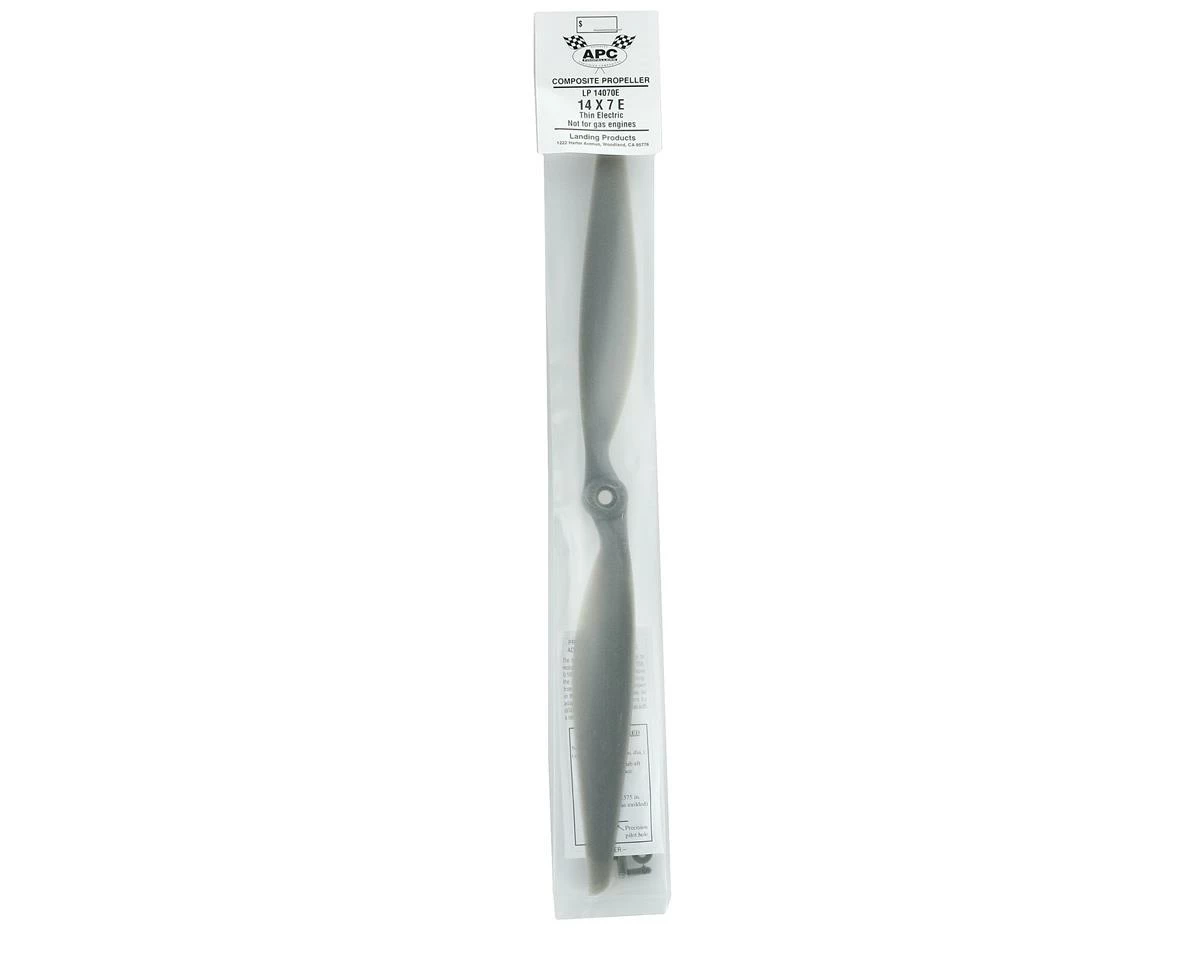 This is the APC 14×7 Thin Electric Propeller. APC propellers are manufactured using a pultrusion process which allows for a higher fiber (60%) to resin (nylon binder) density. This provides substantially higher strength and stiffness than glass-filled nylon. The additional stiffness is beneficial to control vibration resonance response. The higher strength allows the use of thinner cross-sections, beneficial to weight and aerodynamic efficiency.