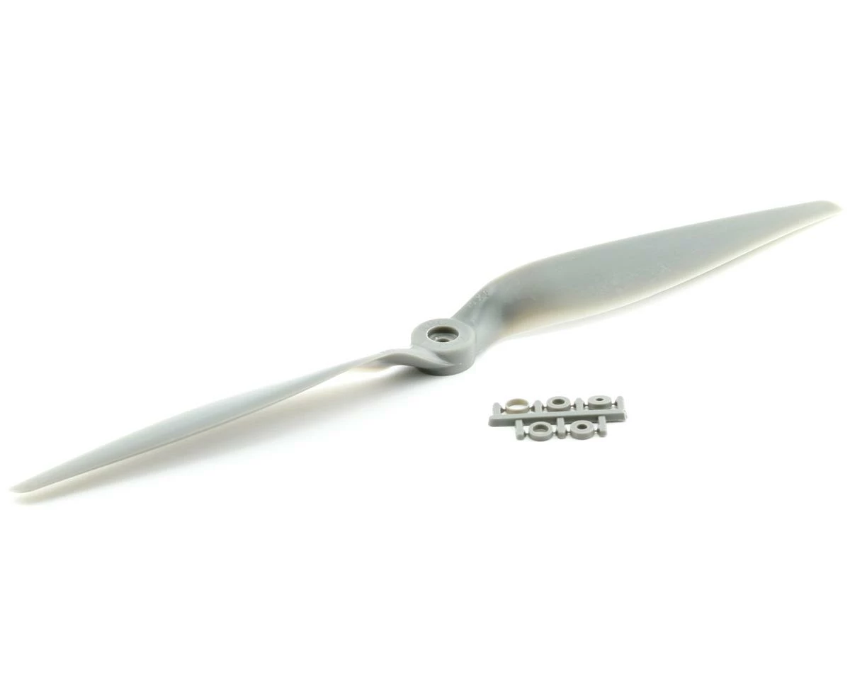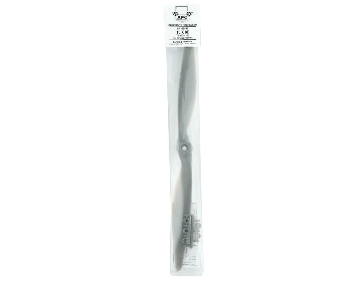 This is the APC 15×8 Thin Electric Propeller. APC propellers are manufactured using a pultrusion process which allows for a higher fiber (60%) to resin (nylon binder) density. This provides substantially higher strength and stiffness than glass-filled nylon. The additional stiffness is beneficial to control vibration resonance response. The higher strength allows the use of thinner cross-sections, beneficial to weight and aerodynamic efficiency.