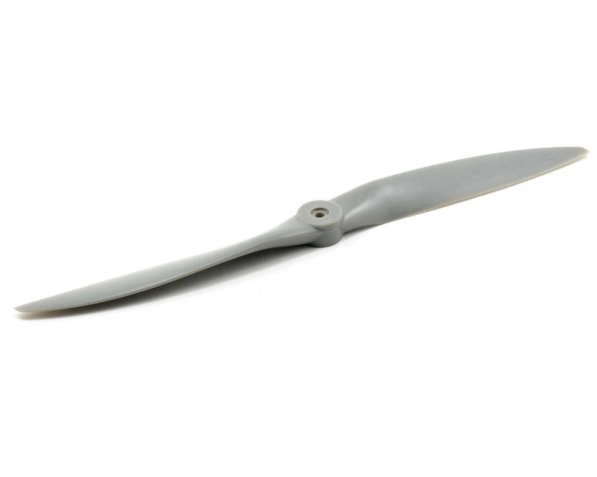 This is the APC 17×8 Piece Pattern Propeller. APC propellers are manufactured using a pultrusion process which allows for a higher fiber (60%) to resin (nylon binder) density. This provides substantially higher strength and stiffness than glass-filled nylon. The additional stiffness is beneficial to control vibration resonance response. The higher strength allows the use of thinner cross-sections, beneficial to weight and aerodynamic efficiency.