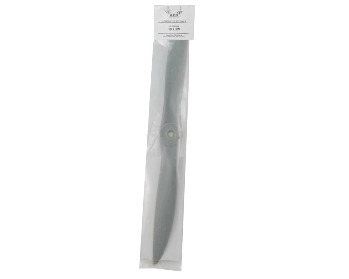 This is the APC 19×8 IMAC Aerobatic Wide Blade Propeller. APC propellers are manufactured using a pultrusion process which allows for a higher fiber (60%) to resin (nylon binder) density. This provides substantially higher strength and stiffness than glass-filled nylon. The additional stiffness is beneficial to control vibration resonance response. The higher strength allows the use of thinner cross-sections, beneficial to weight and aerodynamic efficiency.