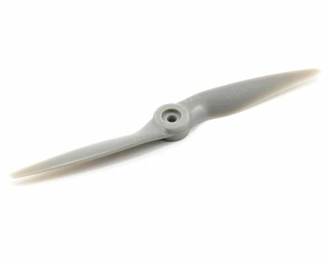 This is the APC 6×3 Sport Propeller. APC propellers are manufactured using a pultrusion process which allows for a higher fiber (60%) to resin (nylon binder) density. This provides substantially higher strength and stiffness than glass-filled nylon. The additional stiffness is beneficial to control vibration resonance response. The higher strength allows the use of thinner cross-sections, beneficial to weight and aerodynamic efficiency.