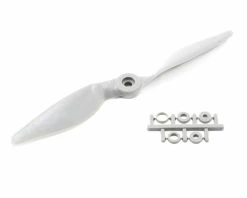 This is the APC 8×6 Thin Electric Pusher Propeller. APC propellers are manufactured using a pultrusion process which allows for a higher fiber (60%) to resin (nylon binder) density. This provides substantially higher strength and stiffness than glass-filled nylon. The additional stiffness is beneficial to control vibration resonance response. The higher strength allows the use of thinner cross-sections, beneficial to weight and aerodynamic efficiency.