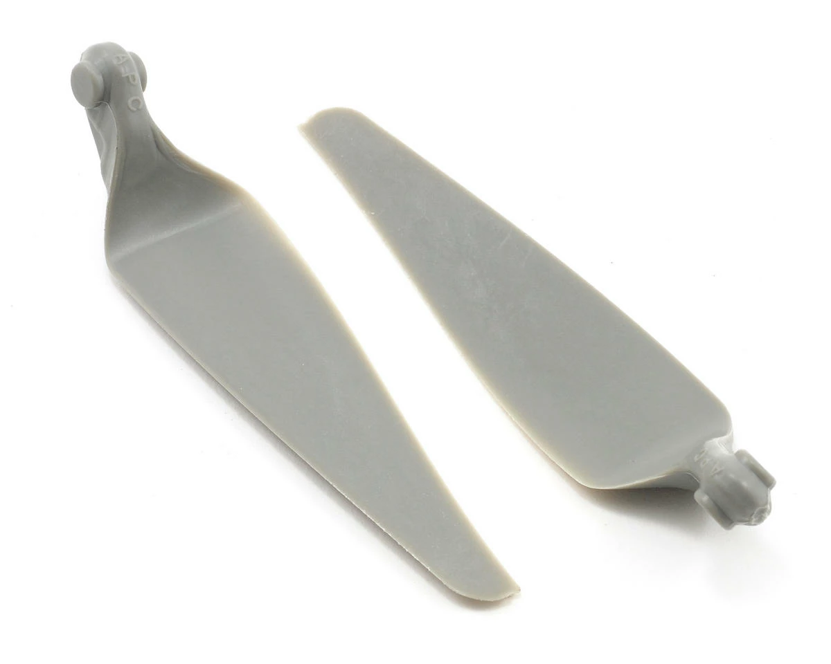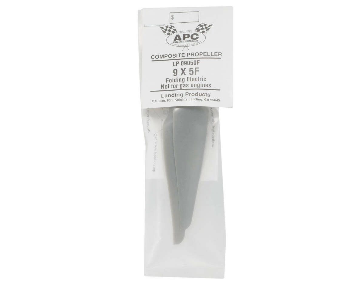 This is the APC 9×5 Folding Electric Propeller. APC propellers are manufactured using a pultrusion process which allows for a higher fiber (60%) to resin (nylon binder) density. This provides substantially higher strength and stiffness than glass-filled nylon. The additional stiffness is beneficial to control vibration resonance response. The higher strength allows the use of thinner cross-sections, beneficial to weight and aerodynamic efficiency.