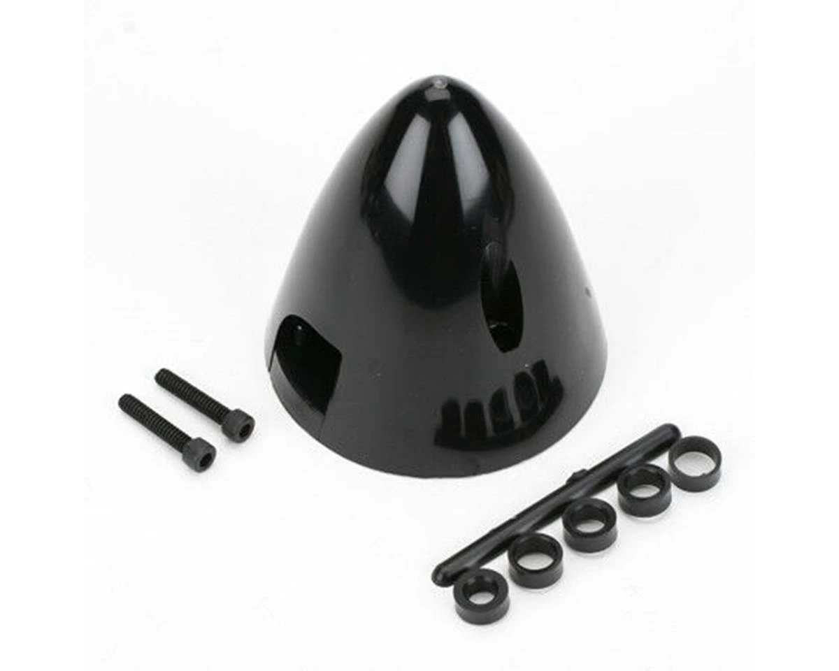 This is a DuBro 4 Pin 2-1/2″ Spinner. These are made to be simple, easy and safe to install. Featuring a unique insert lock design for attaching the back plate and spinner – giving a solid and secure hold. Each spinner comes complete with five shaft adapters (5mm, 6mm, 1/4″, 7mm, 5/16″) so you don’t have to drill out the back plate. Package includes one spinner and five shaft adapters.