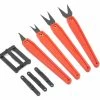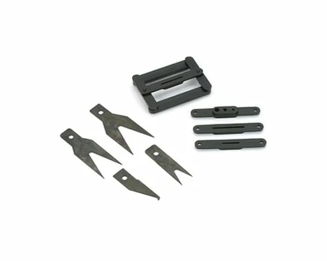Centers & guides for perfectly aligned slots for any hinge. 3 blades fit No. 2 X-Acto handle. 3 snap-on jig guides. 1 per package.