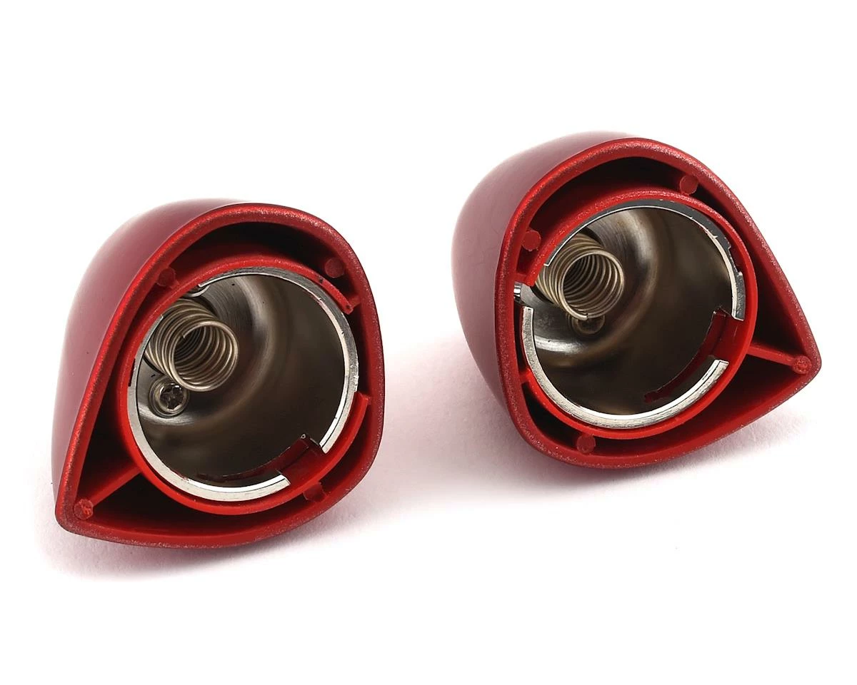 A replacement FrSky 18650 Battery Cap Set in red, suited for use with the X-Lite Transmitter.
