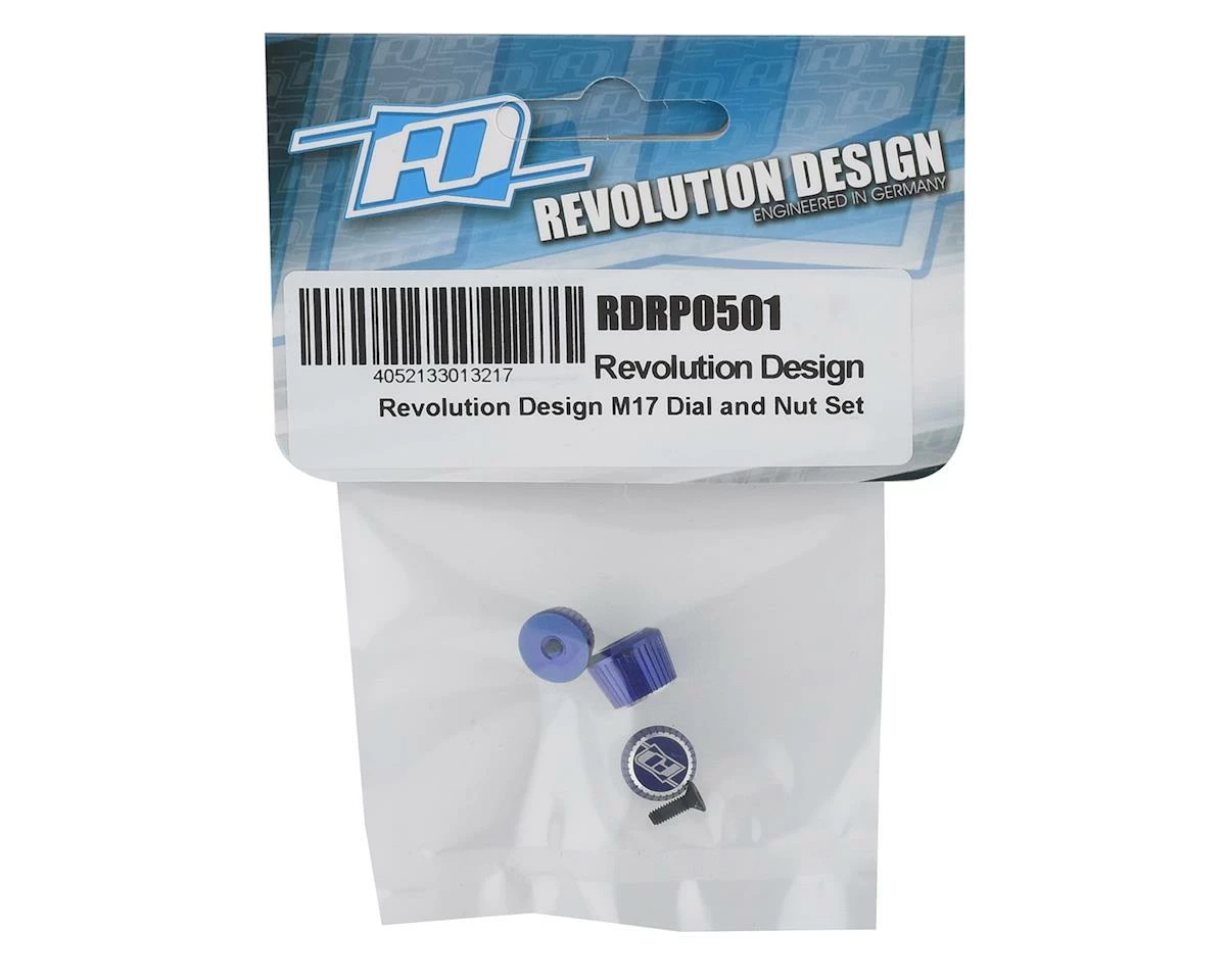 This is an optional Revolution Design Dial and Nut set, intended for use with the Sanwa M17 high-end radio as a quick and easy way to personalize the transmitter to the maximum. The dials and hoop retaining nut are machined from high-quality aluminum and of a serrated design for better gripping and improved haptics. The dial and nut set is available in multiple different colors while machined silver color edge details and laser-engraved logos make the parts stand out. The accessories are a direct fit on the M17 radio and can be combined with Revolution Designs redesigned Sanwa M17/MT-44 RDRP0500 aluminum Steering Wheel. This pack includes two nuts and a dial.