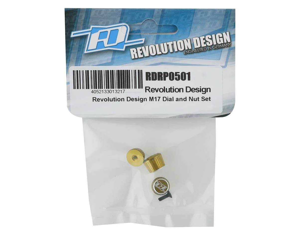 This is an optional Revolution Design Dial and Nut set, intended for use with the Sanwa M17 high-end radio as a quick and easy way to personalize the transmitter to the maximum. The dials and hoop retaining nut are machined from high-quality aluminum and of a serrated design for better gripping and improved haptics. The dial and nut set is available in multiple different colors while machined silver color edge details and laser-engraved logos make the parts stand out. The accessories are a direct fit on the M17 radio and can be combined with Revolution Designs redesigned Sanwa M17/MT-44 RDRP0500 Aluminum Steering Wheel. This pack includes two nuts and a dial.