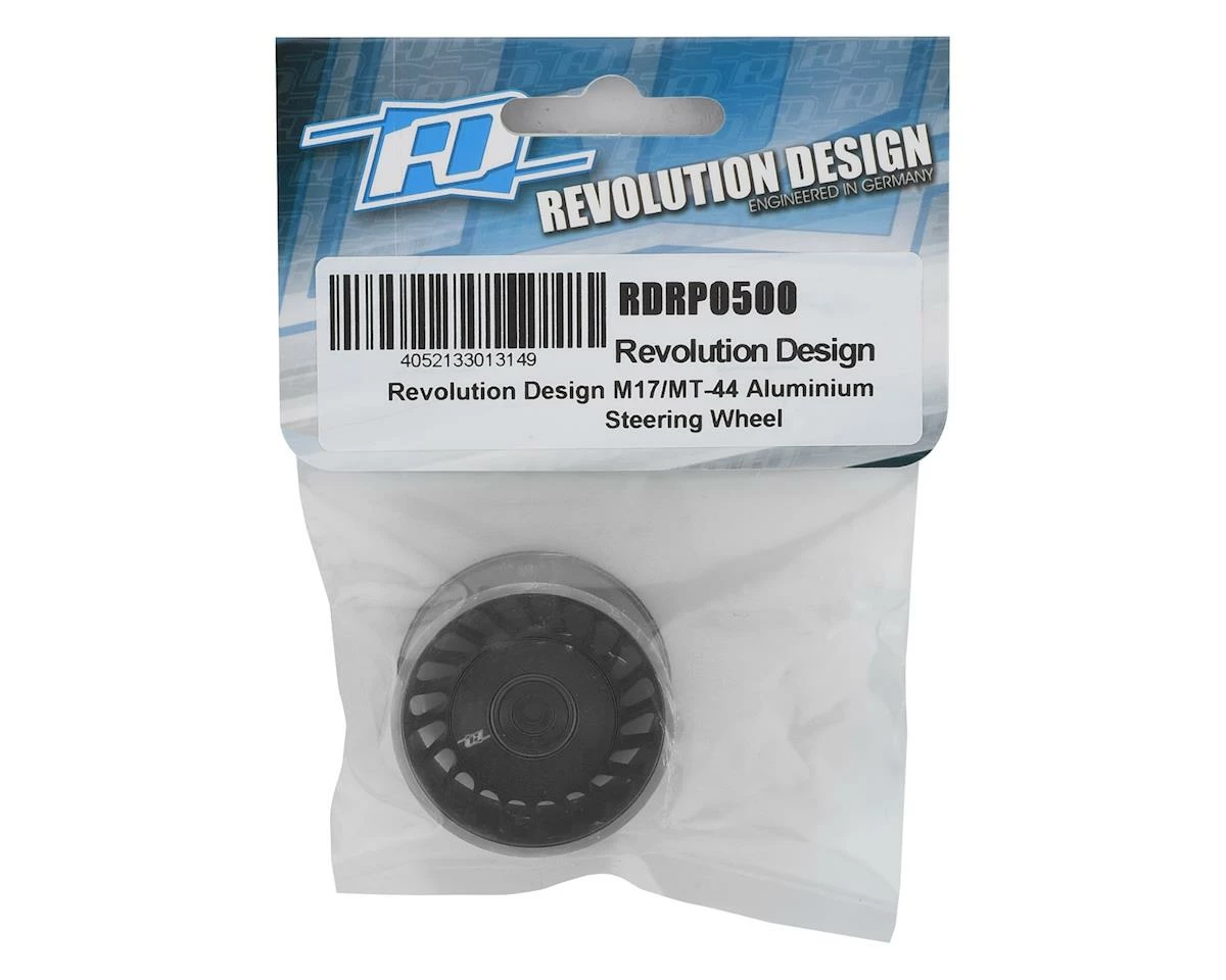 The Revolution Design Racing Products Sanwa M17/MT-44 Aluminum Steering Wheel is a quick and easy way to personalize your transmitter. Machined from high-quality aluminum, the steering wheel features a unique turbine design that greatly enhances the overall appearance of the transmitter while offering improved stability for a more precise steering feel. The steering wheel is available in a variety of colors, while machined silver color edge details and a laser-engraved logo make the wheel stand out. Combine this wheel with the RDRP Sanwa M17 Dial and Nut set (RDRP0501) for the ultimate in custom color combinations!
