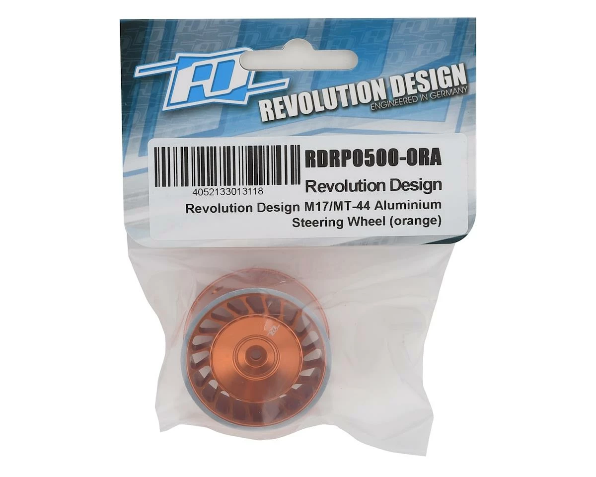 The Revolution Design Racing Products Sanwa M17/MT-44 Aluminum Steering Wheel is a quick and easy way to personalize your transmitter. Machined from high-quality aluminum, the steering wheel features a unique turbine design that greatly enhances the overall appearance of the transmitter while offering improved stability for a more precise steering feel. The steering wheel is available in a variety of colors, while machined silver color edge details and a laser-engraved logo make the wheel stand out. Combine this wheel with the RDRP Sanwa M17 Dial and Nut set (RDRP0501) for the ultimate in custom color combinations!