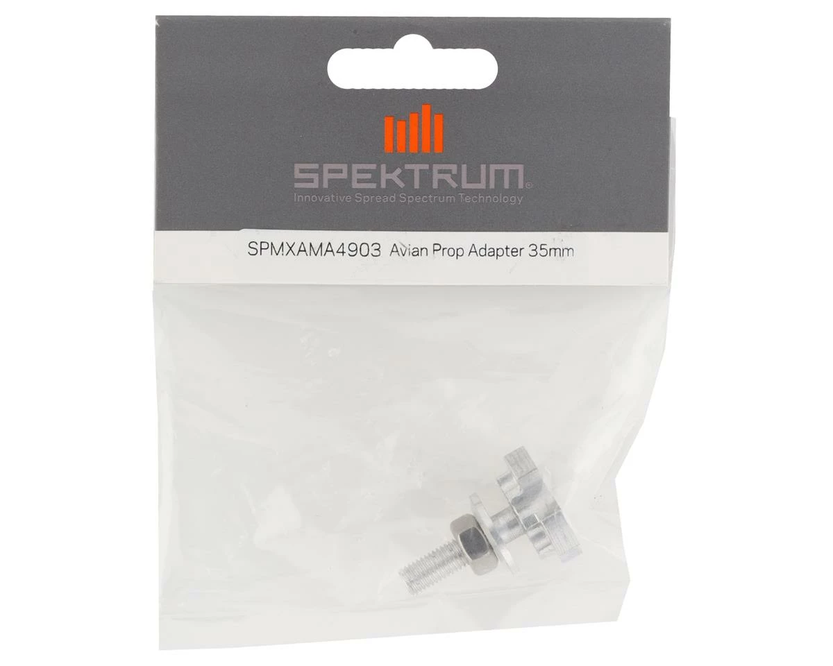Spektrum RCÂ Avian Propeller Adapter. This replacement adapter is intended for the Spektrum Avian SPMXSA4620 and SPMXAM4595 motors. Package includes one adapter, one washer and one prop nut.
