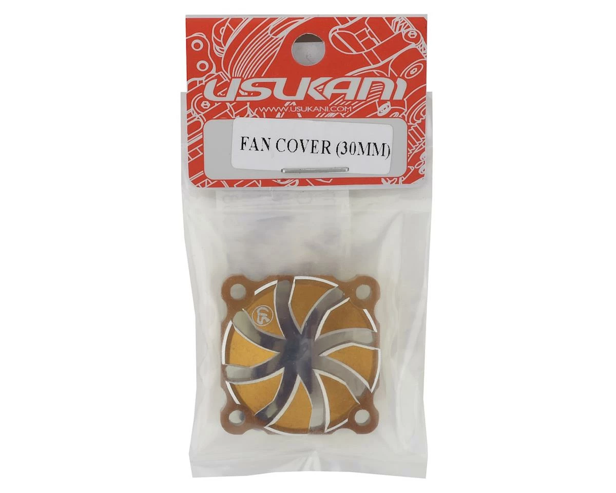 This is a Usukani Yokomo Gold Aluminum Dissilient Fan Cover, intended for use with 1/10 scale drift cars. Precision machined with silver chamferred edges, this cover helps to protect the fan blades of a standard fan while adding a custom look to your ESC or motor fan assembly. Available in either standard 25mm or 30mm sizes.