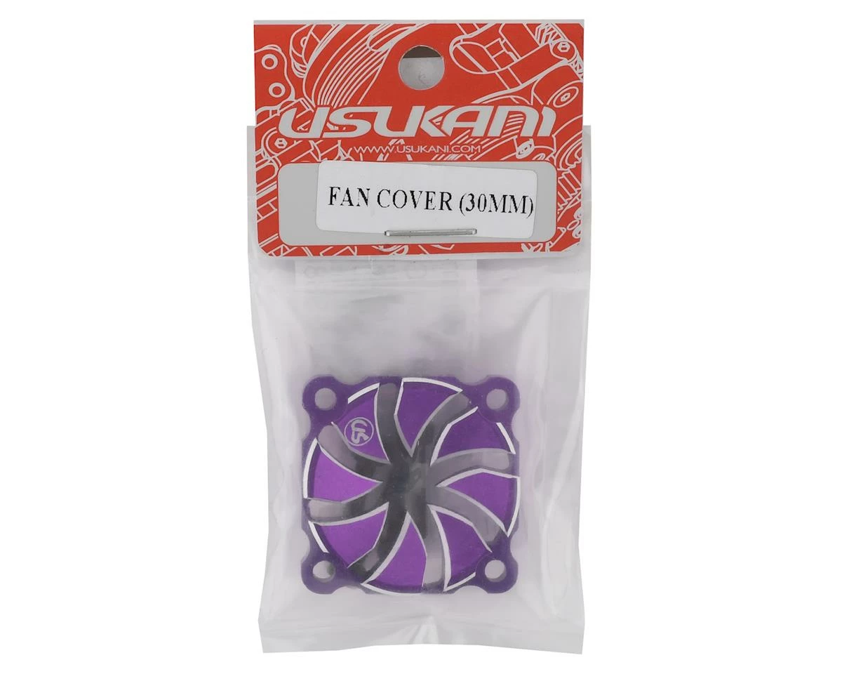 This is a Usukani Yokomo Purple Aluminum Dissilient Fan Cover, intended for use with 1/10 scale drift cars. Precision machined with silver chamferred edges, this cover helps to protect the fan blades of a standard fan while adding a custom look to your ESC or motor fan assembly. Available in either standard 25mm or 30mm sizes.